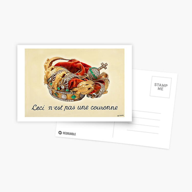 In an example of crime imitating art, Empress Eugénie’s crown was left crumpled on the sidewalk after the Louvre Museum heist in October 2025. Magritte was right. This is not a crown.